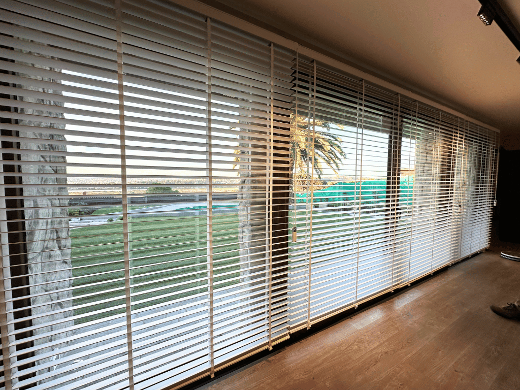 – **Control de Luz Personalizado:** Con lamas ajustables que permiten un manejo preciso de la luz natural, podrás crear el ambiente perfecto en cualquier momento del día, ya sea que desees una luminosidad suave o una oscuridad total.